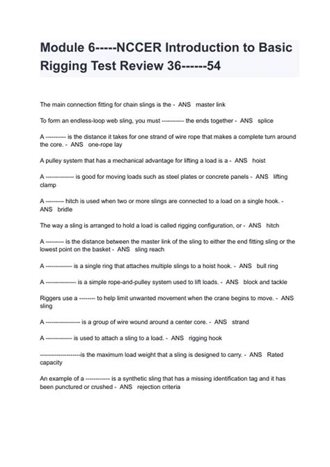 Read MODULE 6 EXAM BASIC RIGGING ANSWERS Doc